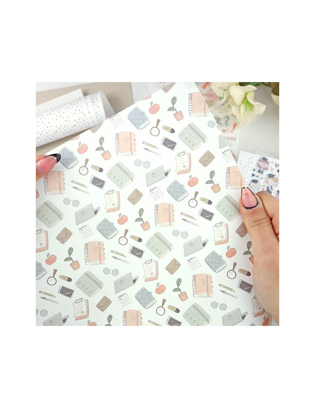 - Material: papel impreso a una cara y laminado