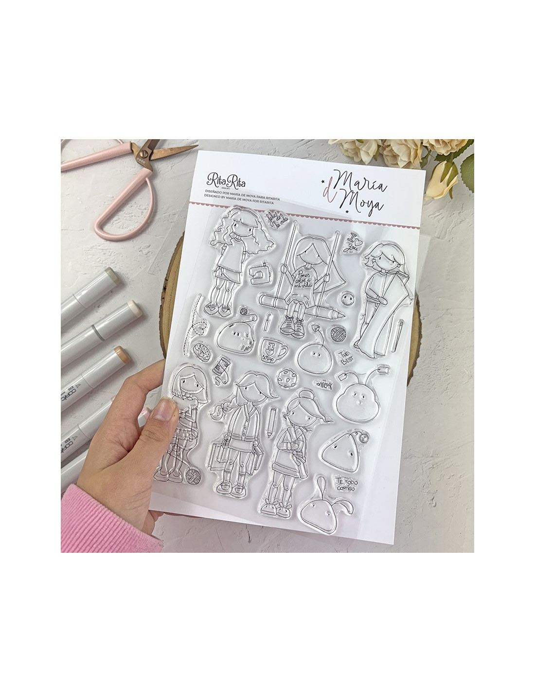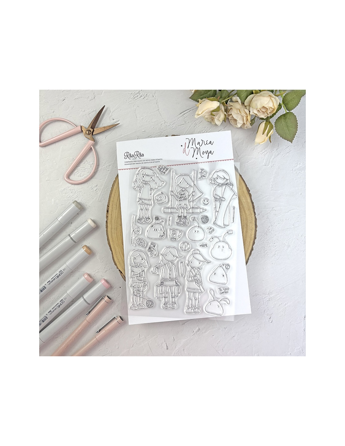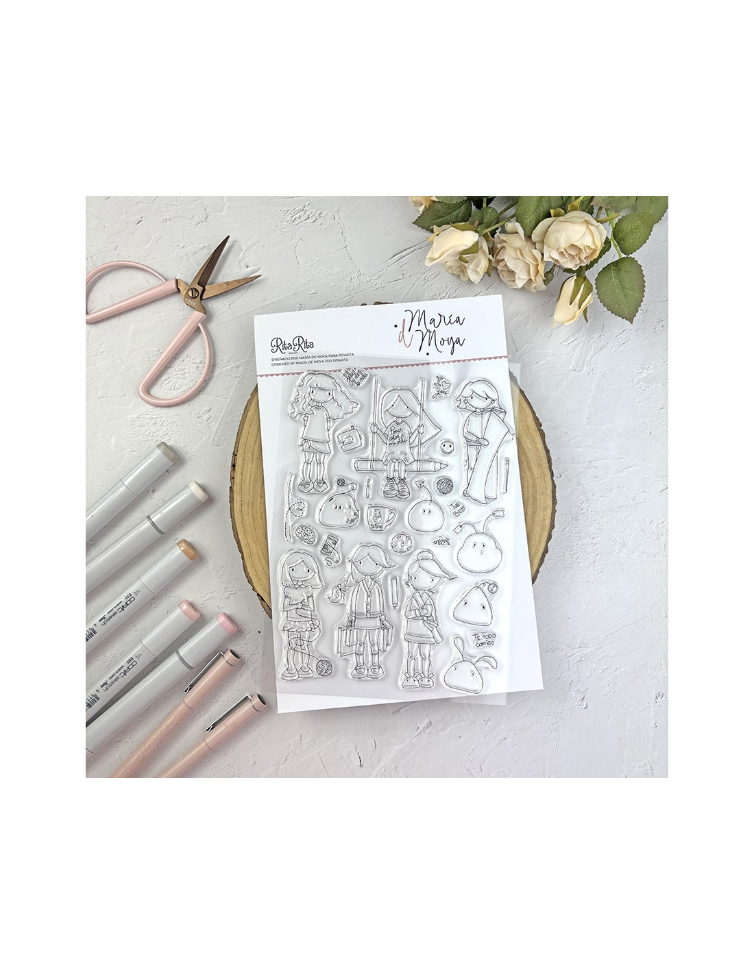 clear stamp set by María de Moya