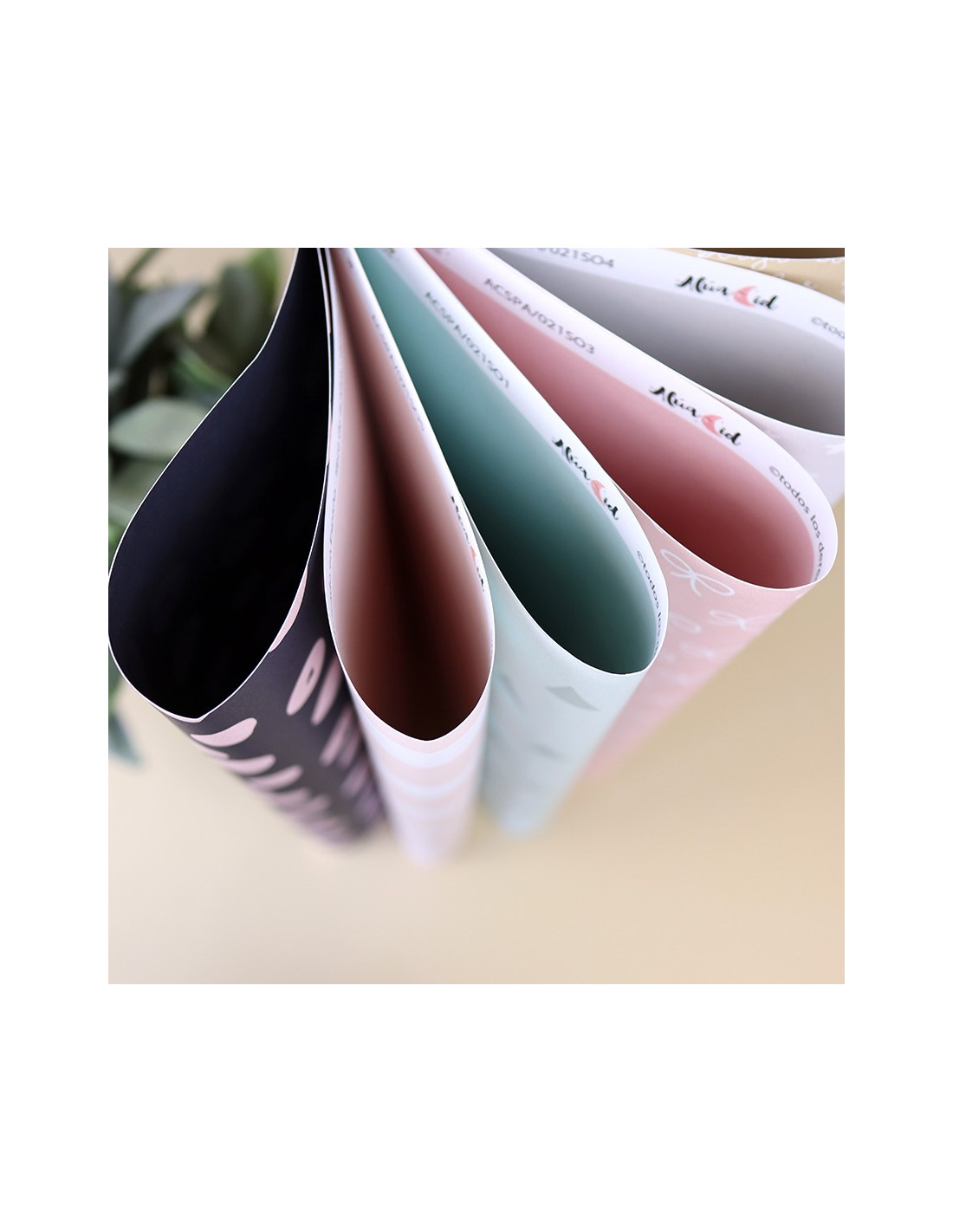 - Cantidad: 6 papeles impresos a doble cara en colores sólidos