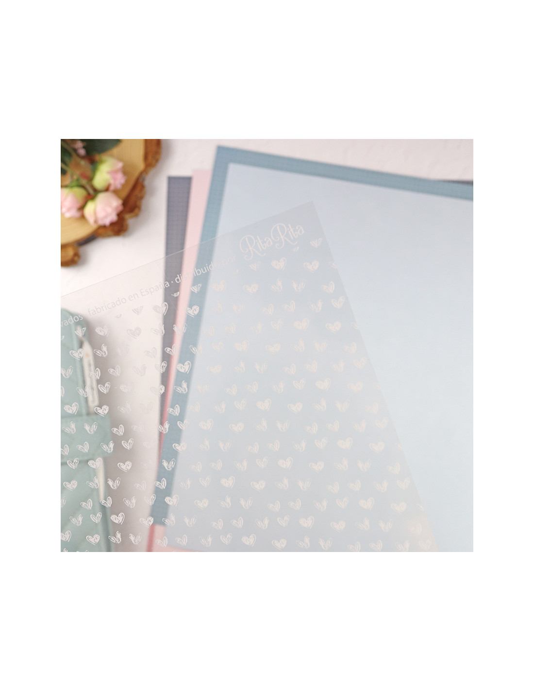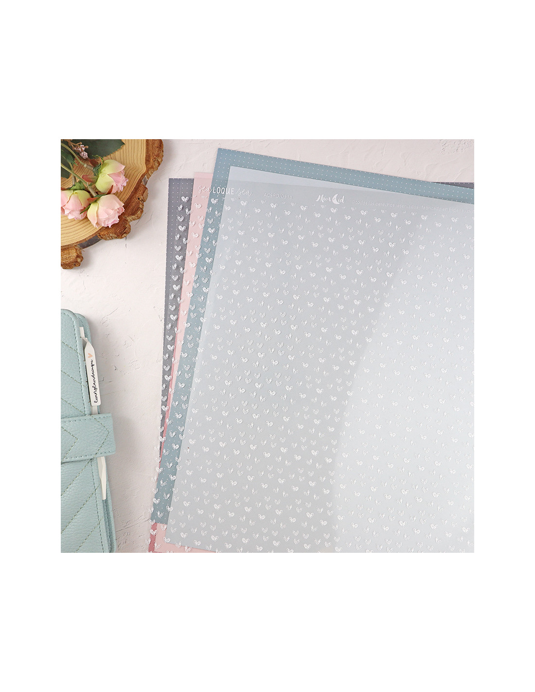- Materials: 250 gr paper, vellum & acetate