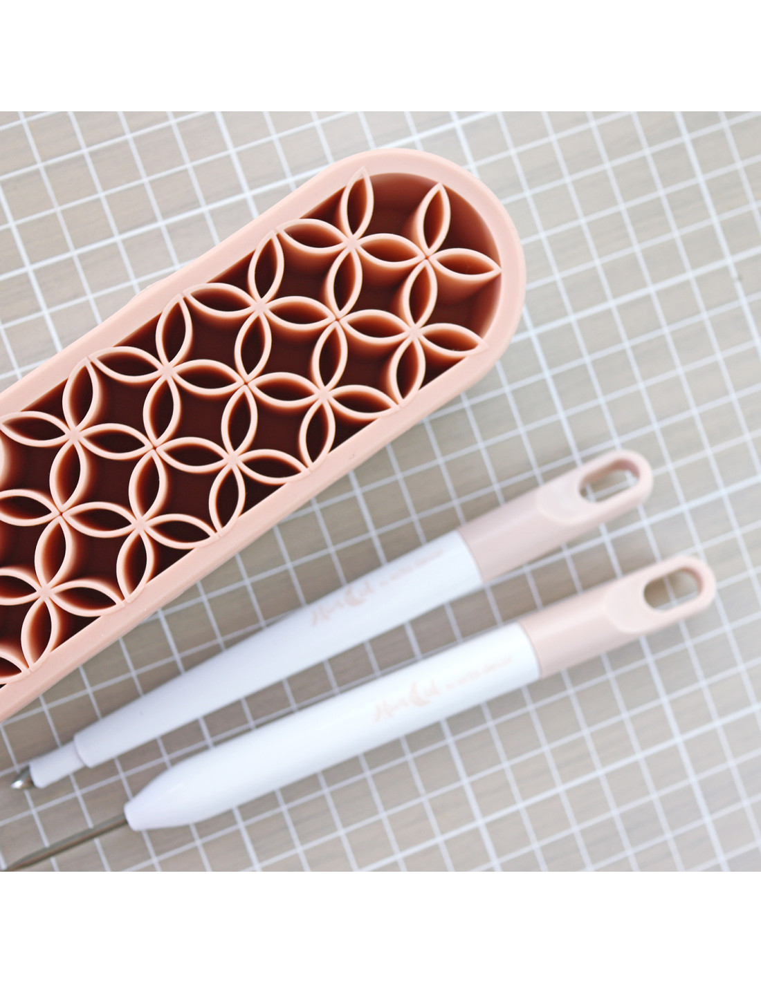 - Material: plástico blanco/silicona rosa