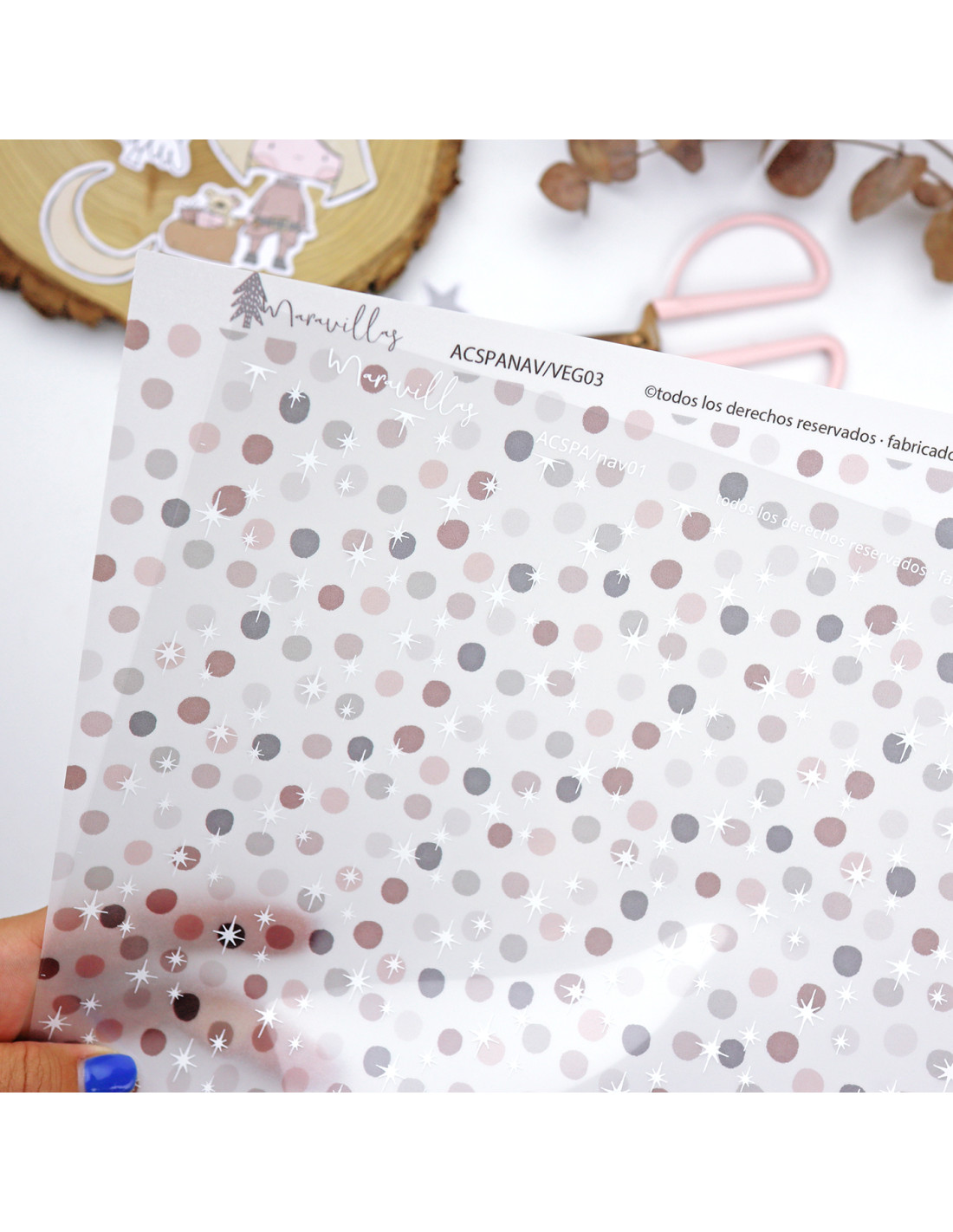 - Cantidad: 6 papeles (3 papeles vegetales y 3 tres acetato impresos a un color)